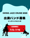 2025年6月30日 / 最終更新日時 : 2025年9月22日 SJCcruise SJC2025 SJC本祭の出演バンドを募集します 9/27,28に開催されるSJC本祭のバンド募集が『7/2〜7/16』に決定しました🚢✨ ビッグバンドとコンボ、同時募集です!応募忘れのないようご注意ください⚠️ 募集期間になりましたらGoogleフォームのリンクをお知 […]